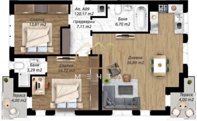 Две тераси по 4 кв.м – идеални за сутрешното кафе или вечерна почивка